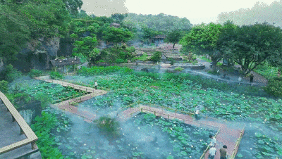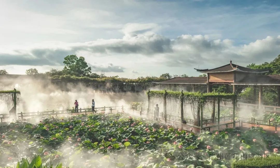 莲花仙境人工水雾每日定时开启,云雾缭绕间,莲荷若隐若现,如临瑶池仙境,随手一拍皆是“出圈级”大片。