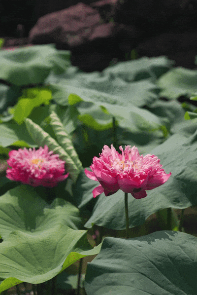 “连理莲”表现为两花独立开放,由侧芽分株生长时茎秆自然贴合或交织而成,形成“双茎双花”的独特景观。该现象可类比古书中描述的“连理枝”(树木枝条自然合生),象征爱情或亲情的紧密联结,有“永结同心”“忠贞不渝”的寓意。